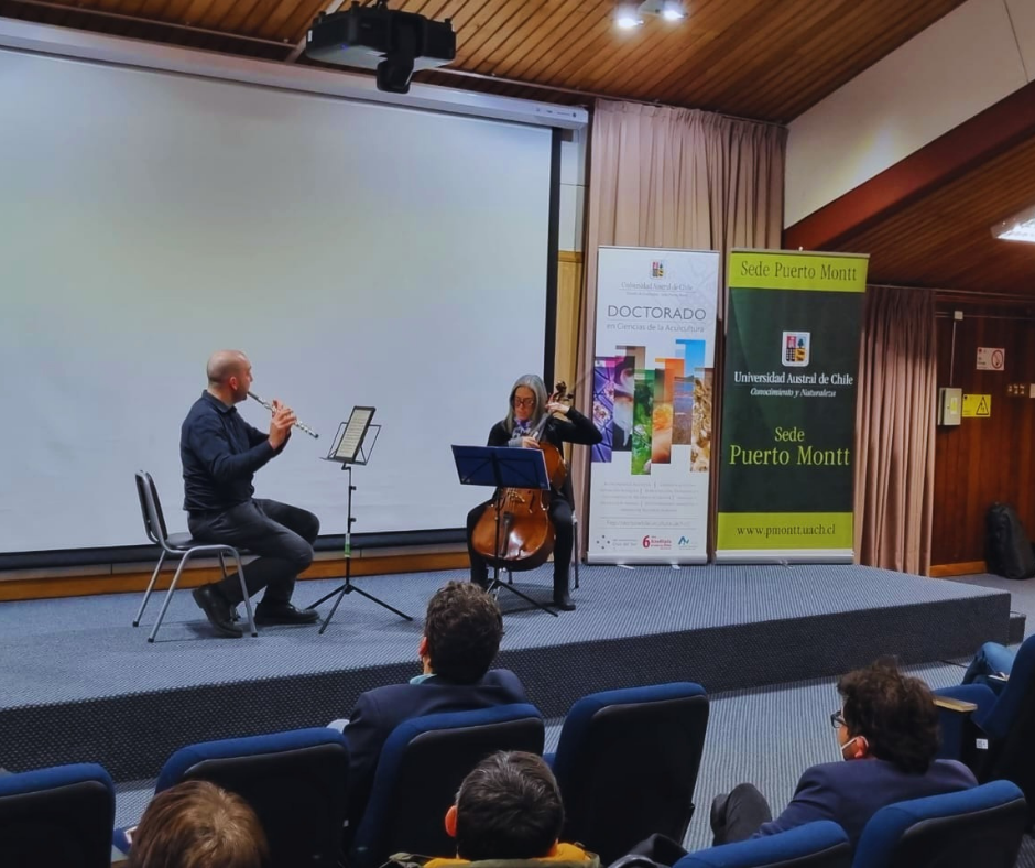 Vale señalar que la actividad concluyó con la interpretación de la pieza músical titulada “5 Piezas para Flauta y Chello”, la cual estuvo a cargo de los profesores Aracely Rojas y Edgar Girtain de la Casa de las Artes de la Dirección de Vinculación con el Medio de la Universidad Austral de Chile-Sede Puerto Montt.